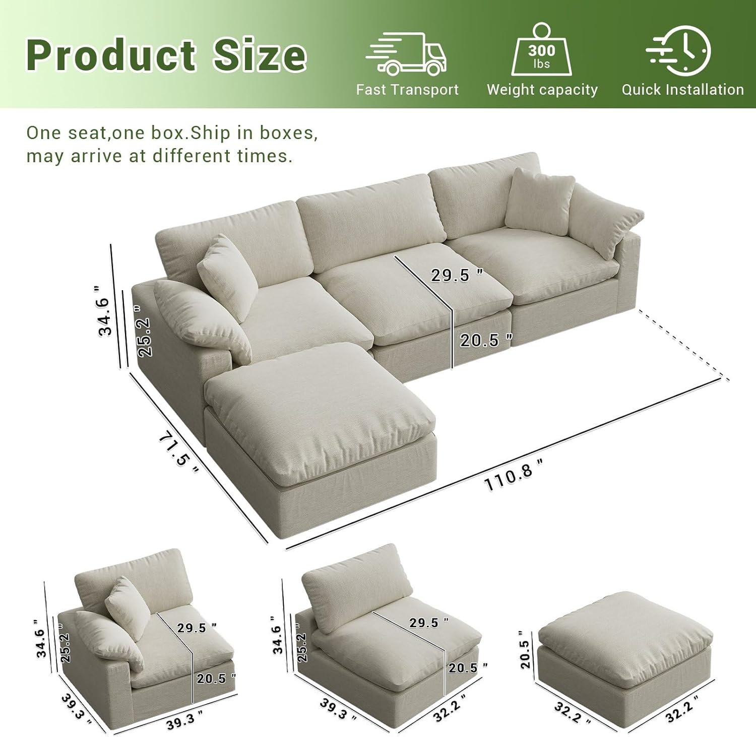 【Chaise with Larger Seats】Modular couches feature clean and classic design,Sit wide and deep- make people comfortable and relax, release pressure.Supported head pillow-release the pressure of cervical vertebrae, sitting for a long time is not tired.Lean round and full on the armrest-provides comfortable support for reading or playing.