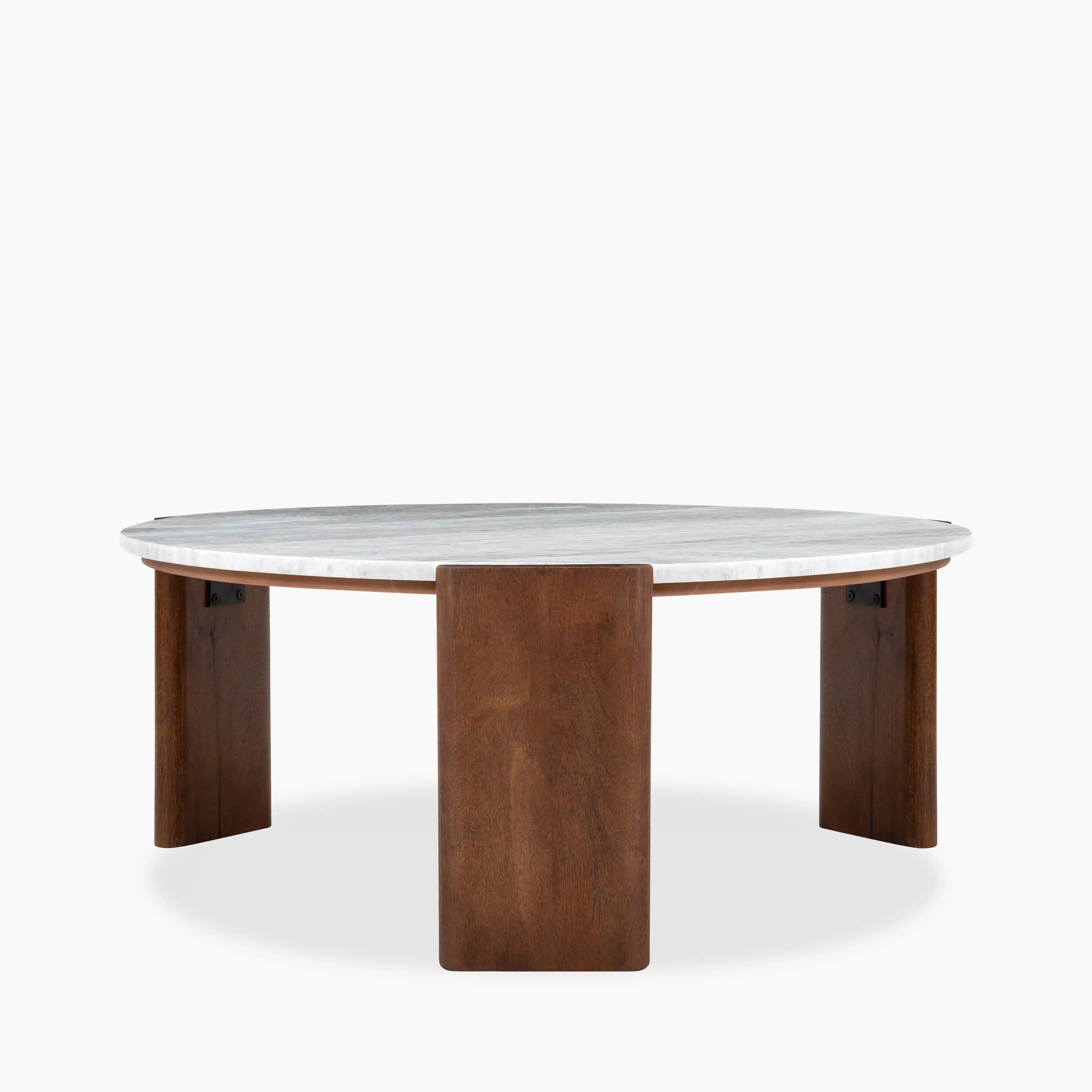 Enjoy that much-needed tea break with the Emil Coffee Table. With its sleek curves, grey marble top and walnut-stained mango wood legs, this coffee table makes a stunning statement. We love the richness in the mango wood legs with clean grey marble. Pair with Emil Side Table and place next to a sofa of your choice to create that perfect comfort zone. This product is handcrafted from natural marble, making each piece unique with naturally occurring texture, pattern, and colour. These variations should be seen as part of the beauty of the design that makes this a truly one-of-a-kind piece. The Emil Range is made from highly sustainable mango wood and natural material, marble. Both materials are highly durable and part of our Cult Eco Edit.