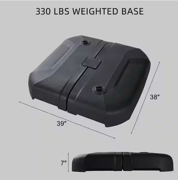 Base included: Dimension: H 7 in, W 39 in, D 38 in.